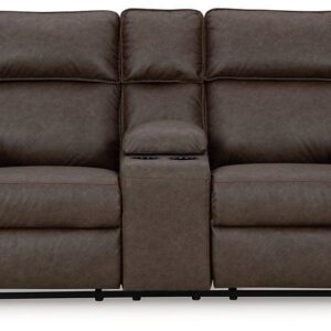 Catering to your contemporary lifestyle, this sectional loveseat is a handsome marriage of masculine and feminine sensibilities. Feather-fiber cushions and bolster pillows soften the look of its chunky, linear silhouette. Warmly hued leather match upholstery levels up the affordable luxury. And you’ll never run out of ways to stage this seating arrangementeach piece is fully finished on all sides and capable of standing solo. Urban sophistication has never been more versatile.