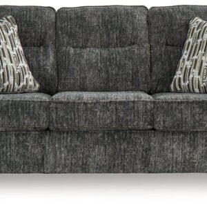Casual contemporary style, meet carefree lounging. With this sofa, you dont need to sweat the small stuff. Thanks to its a fresh navy hue, you can stay right on trend when you relax solo or with guests. Arm bolster pillows keep you extra comfy. Time for a touch-up? Machine-washable Next-Gen Nuvella covers make upkeep a breeze.
