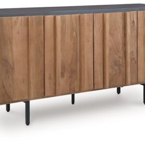 Add layers of form and function to your space with this accent cabinet. It’s draped in a black finish on the outside and a warm gray finish inside, for a classic look that seamlessly transitions from casual to modern styles. This accent cabinet’s flexible design includes three doors and two shelves for simple and streamlined storage.
