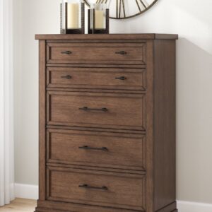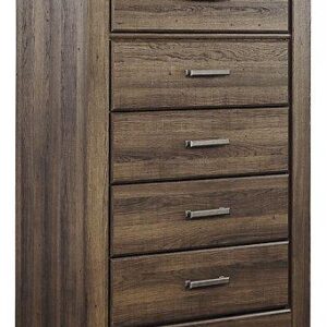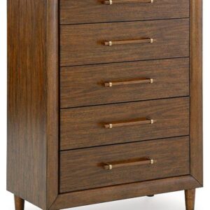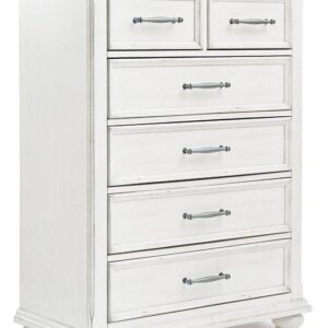 Cottage quaint styling and quality construction make this chest of drawers a dream come true. A two-tone finish provides rustic warmth, with an antiqued gray body and a rich, deep walnut on the top. Framed drawer fronts and dark bronze-tone hardware marry classic elegance and homey charm. Five smooth-gliding drawers are crafted with quality dovetail construction.