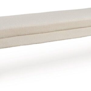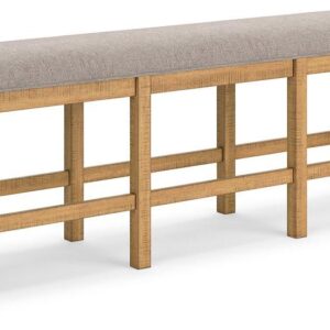 Busy breakfasts and family dinners get a dose of modern farmhouse flair with this dining bench. Its two-tone finish contrasts a light butcher block hue with antiqued white for an utterly charming effect. An effortless seating solution, the bench can tuck under your table to give you extra space to maneuver through the dining room.